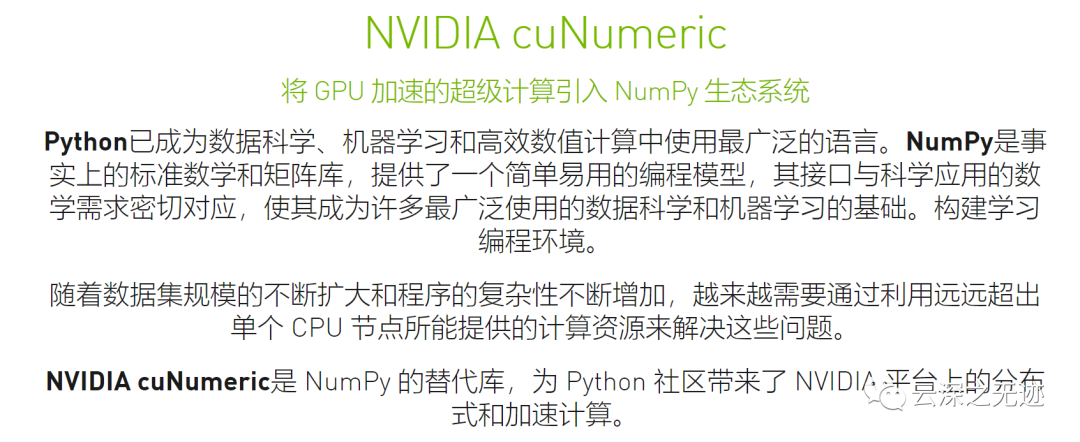 英伟达在今年得GTC会议上面展示了60多个SDK,其中有一个将GPU运算带入Numpy生态里面得开源项目,我觉得很有趣。