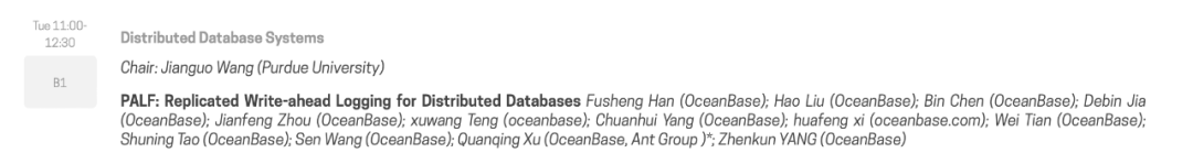 VLDB Paper Session (B2): PALF: Replicated Write-ahead Logging for Distributed Databases
