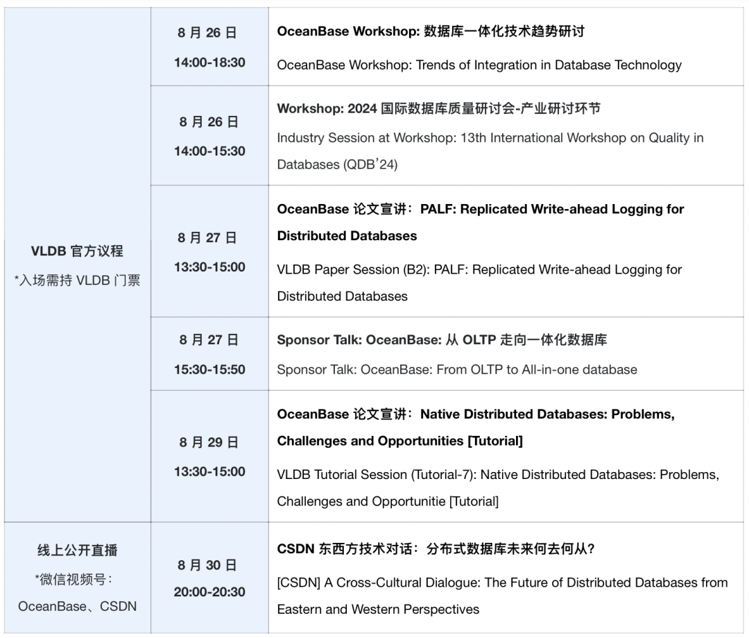 一场学界与工业界的跨界联动,一次东西方数据库前沿声音的交流碰撞,8 月 26 日至 29 日,OceanBase 与你不见不散!