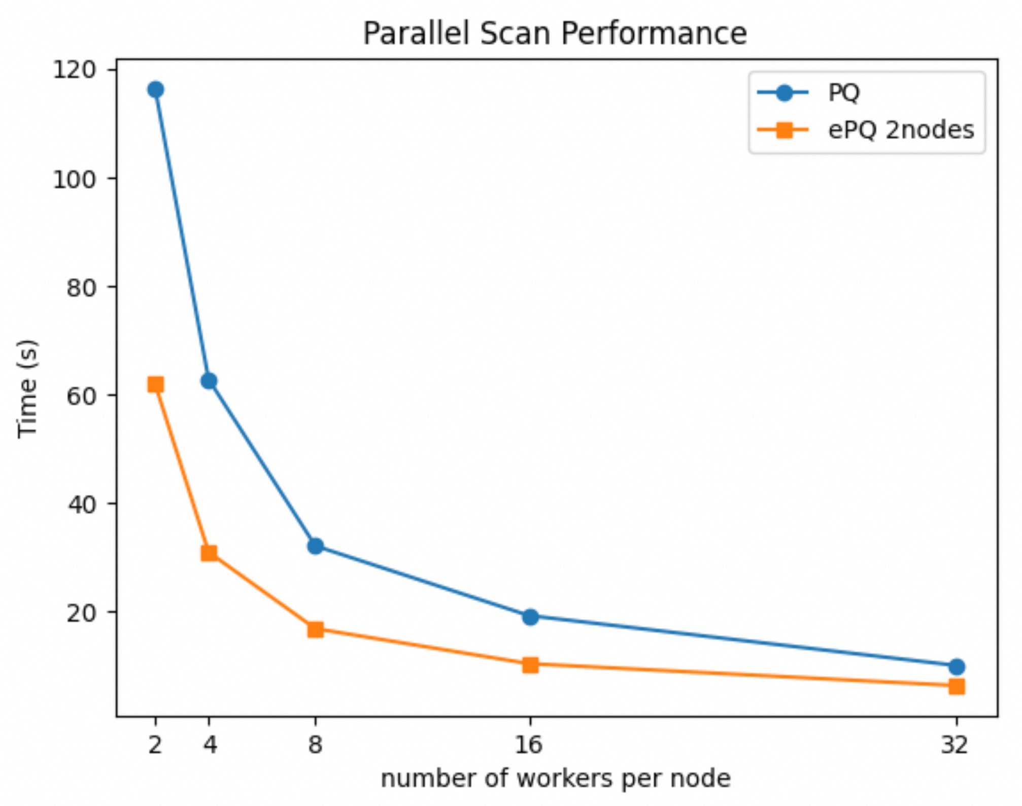 如果有多个节点,也可以开启ePQ,进一步提升查询性能。开启ePQ后,查询计划会显示有几个节点,总并行度为多少: