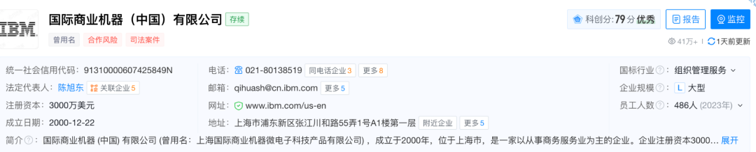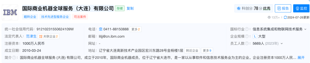 从天眼查公开数据来看,目前IBM 在国内主要有3家主体,分别是国际商业机器(中国)有限公司、国际商业机器(中国)投资有限公司、以及国际商业机器全球服务(大连)有限公司