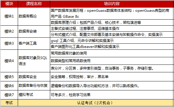 openGauss OGCA认证是这一培训体系的初级阶段,和GBase 8c GDCA认证培训一样,都是学习者们掌握openGauss的起点。