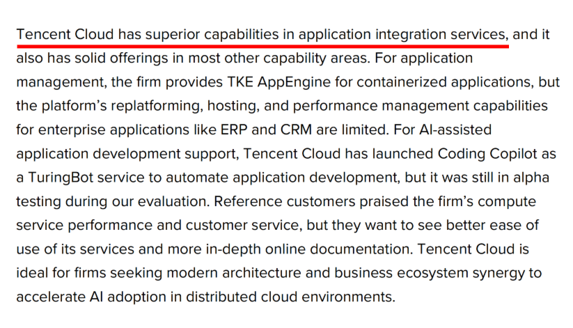 Forrester 在报告中明确指出:“腾讯云在应用集成服务方面具有卓越的能力”这充分证明了腾讯轻联 iPaaS 在这些关键领域所取得的成就。