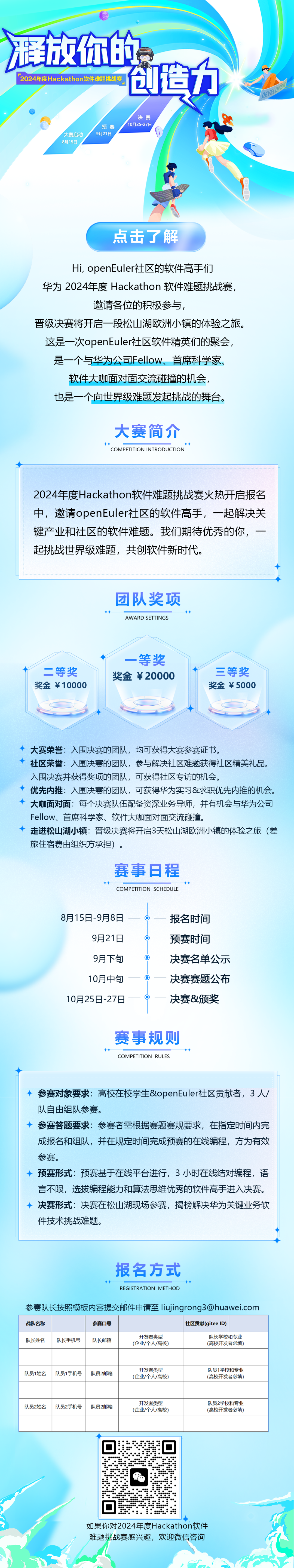相关题目,欢迎社区的软件高手积极参与,一起深入了解openEuler、与软件精英结对编程,扩大知识视野,show 出极致自我,晋级决赛还可以开展一段松山湖欧洲小镇之旅。