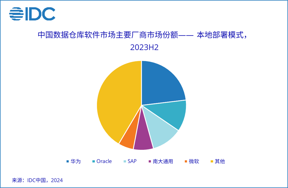 2023下半年中国数据仓库本地部署模式市场厂商份额情况如下: