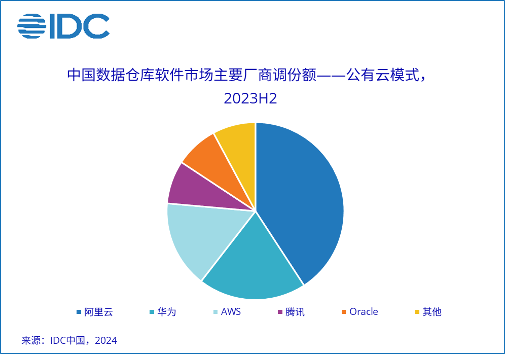 2023下半年中国数据仓库公有云模式市场厂商份额情况如下: