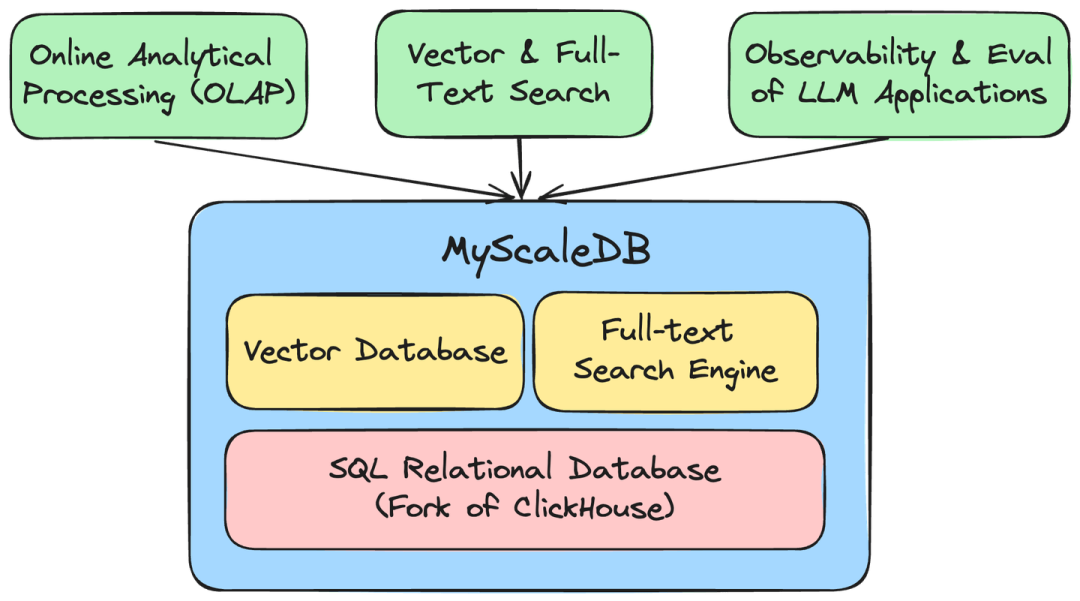 MyScaleDB 是一个基于 ClickHouse 构建的开源 SQL 向量数据库。它旨在为 GenAI 应用提供高性能和具有成本效益的数据库底座。通过将 SQL 数据库/数据仓库、向量数据库和全文搜索引擎的功能集成到一个高效的系统中,MyScaleDB 显著降低了基础设施和维护成本。这种统一不仅促进了联合数据查询和分析,还建立了一个对所有 AI 应用至关重要的强大而多功能的数据基础。