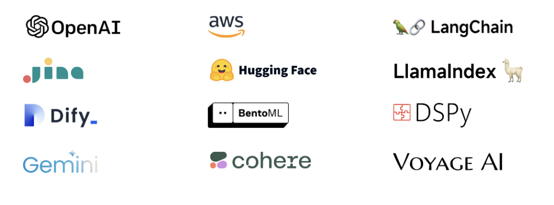 目前 MyScaleDB 已经完成了与 AI 技术生态中的流行大模型以及应用开发平台的集成,包括但不限于: