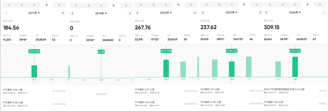 定下目标后的连续 4 年,其实几乎接近 0 跑步状态。