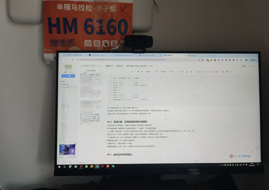 我家里办公桌电脑上方最醒目的位置会放上我去年参加半马的号码布,流汗打湿的痕迹犹在。