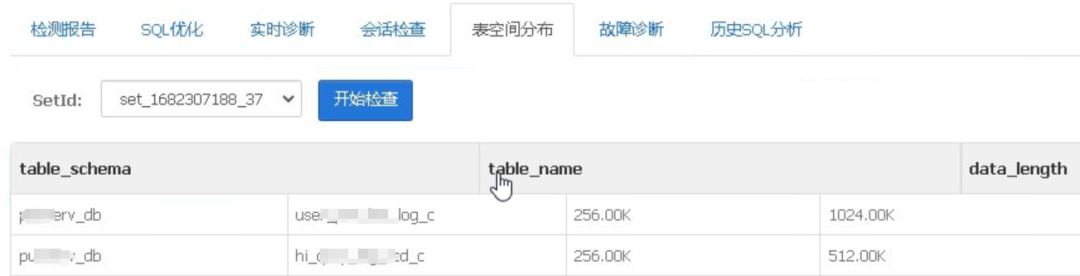 3、登录赤兔管理平台,在“表空间分布”功能页面,找到哪些表占用的空间最大。由于磁盘使用量已经达97%且无法进行磁盘扩容,DBA及时通知开发单位对业务表进行核实并确认是否可以清理部分数据来确保业务稳定运行。