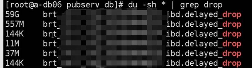 6、为何drop 表也释放不出来空间,这个到底是什么情况呢?在表存储目录下,看到表数据文件自动增加了“.delayed_drop”后缀。