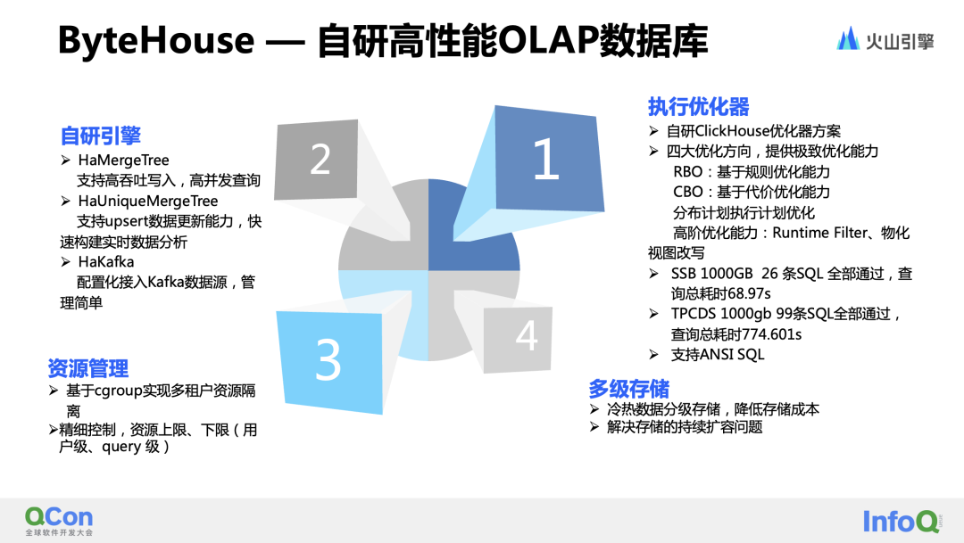 到现在,从产品架构来看智能数据洞察,主要分为五层:数据接入、查询引擎、数据建模、数据分析和数据展示,具备了高度的可运维能力。如今,智能数据洞察在抖音集团内部覆盖了绝大多数员工使用需求,可支持海量数据处理需求,实现秒级查询。数年来,大用户量、高并发的考验推动产品从夯实基础到创新突破的蜕变。在此过程中,平台也曾面临不少挑战,尤其是当平台用户量增加之后,需要不断在易用性、性能、成本之间做权衡和优化。