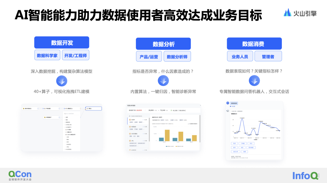除了提供低门槛的产品功能和极致的分析性能外,智能化方面也有很多探索。通过AI能力,BI平台可以帮助业务人员在数据挖掘、归因分析、洞察决策方面提供智能化的解决方案。