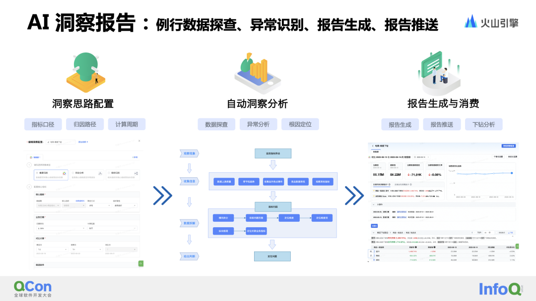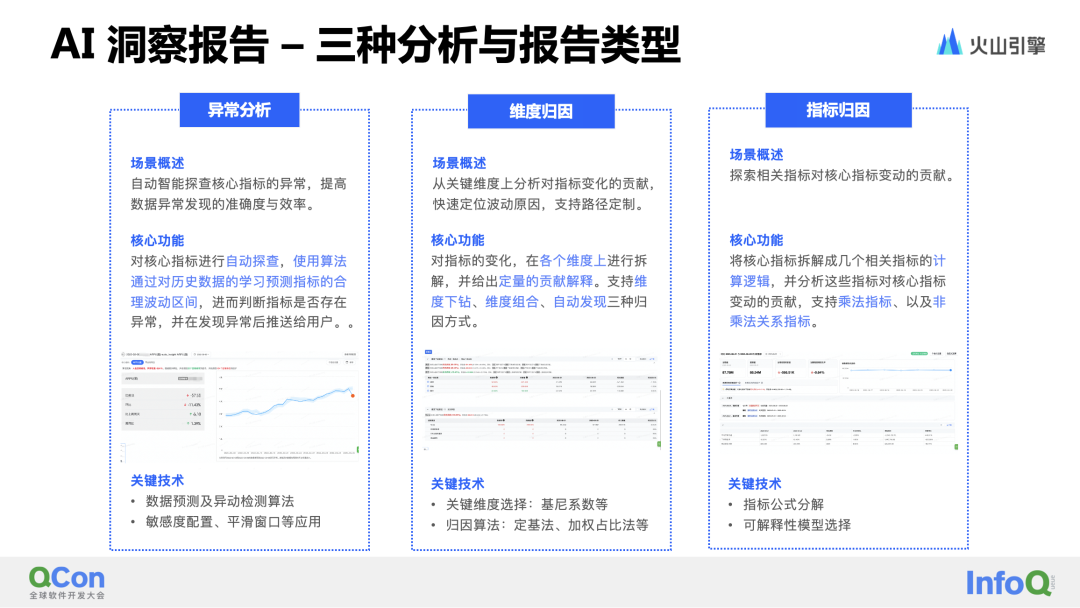 AI洞察报告:例行数据探查、异常识别、报告生成、报告推送归因报告中能够支持三种报告类型,分别为异动分析、维度归因以及指标归因。