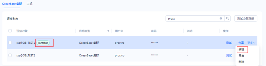 这两个账号有各自的功能,首先proxyro是proxy连接集群需要使用到的,也是我上文问题中需要用的,如果忘记这个密码,可以用root@sys#clustername账号登录sys租户修改proxyro用户的密码,后台改密码的话一定要去更新proxy的observer_sys_password参数和ocp的密码箱,如果ocp的密码箱没有丢失的话,尽量从前台sys租户下的用户管理处白屏修改proxyro密码,他会级联去修改其他的参数。
