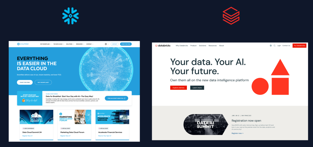 Databricks是一家云数据库公司,也是湖仓解决方案的佼佼者,现在Databricks把自己的目标定位在“干掉”Snowflake,正所谓抱着“干掉第一,我就是第一”的态度,直指Snowflake当时超过1000亿美金的市值。