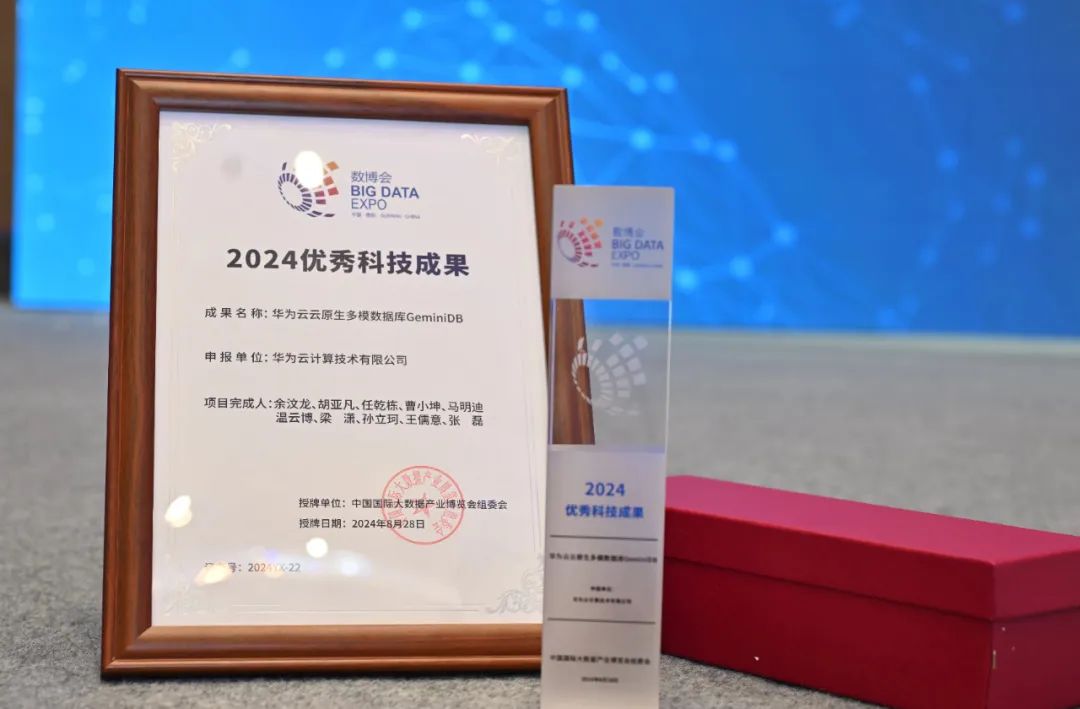 今天,2024中国国际大数据产业博览会(简称数博会)在贵阳顺利召开。在下午的数博发布活动上,华为云云原生多模数据库GeminiDB凭借先进的技术能力荣获“优秀科技成果奖”。