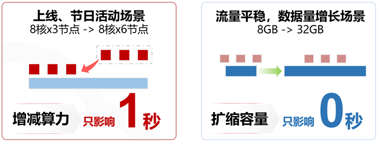 GeminiDB全主架构下,存储层为数据提供3副本可靠存储,计算层所有节点可共享全量数据,无需额外的“备节点”。主节点直接将数据写入存储层,由存储层将数据扩散至所有副本上,并保证多副本的数据一致性,去除了不必要的复制逻辑,让更多的资源可以用于计算,从而提高资源利用率,极大节省计算节点的CPU和网络资源消耗。通过灵活的弹性扩缩容能力,用户可以根据业务流量进行快速的弹性伸缩。在存储层,不同用户之间可以通过资源隔离共享整个存储池,对单个用户而言可以实现从数GB到数百TB间的快速调整,且对在线业务零影响。计算节点支持水平增减节点数和垂直变更单个计算节点规格,变更流程中无需任何数据搬迁。