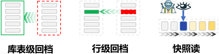 时间漫游特性支持全量数据实时增备(RPO=0),库表级数据一键回档,让时间“倒流“;支持数据行级回档,精准回溯;支持数据快照读,实现版本回退和灵活存档,让时间“静止”,为客户提供高可靠和高可用的数据回档功能。