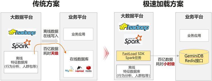 在类似数据分析类的复杂业务场景,传统NoSQL数据库面对数百GB乃至数TB数据的写入通常需要数小时或者数天的时间,对在线业务影响较大。