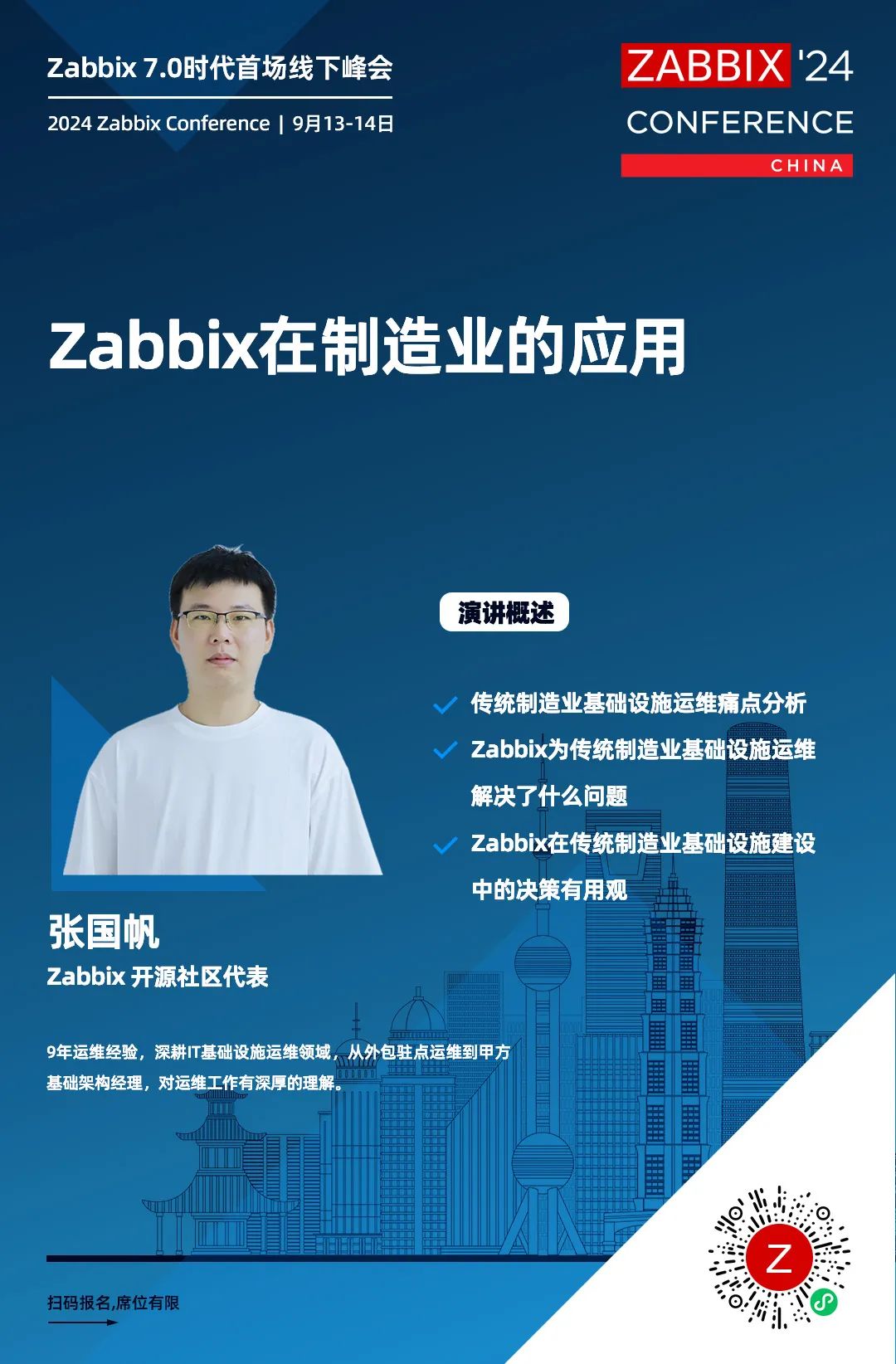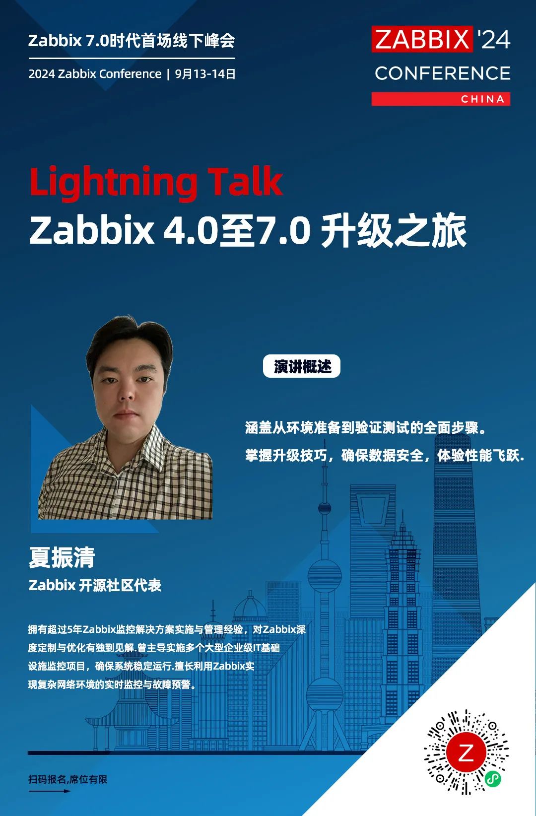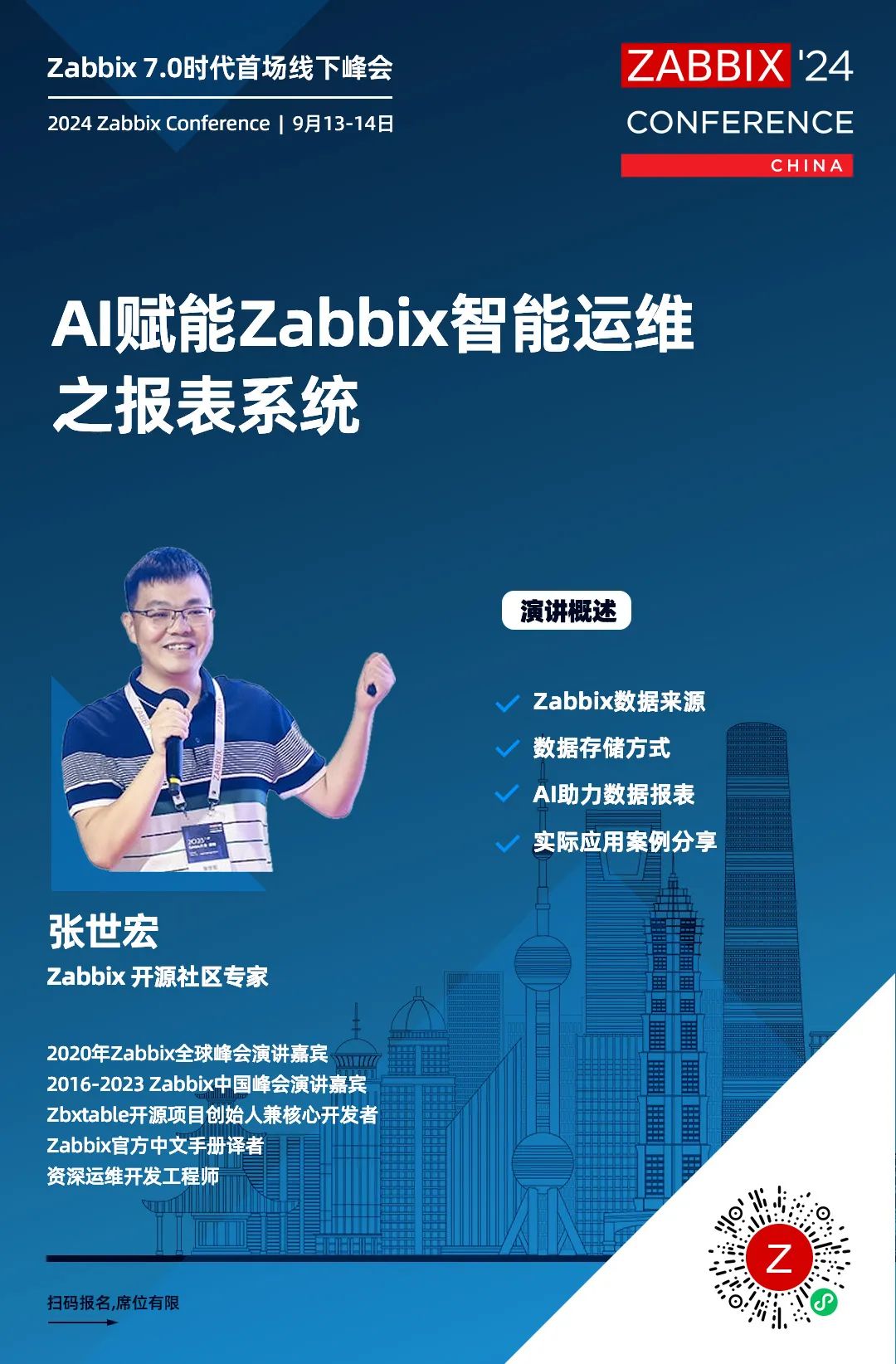 Zabbix开源社区链接用户,营造学习互助的社区氛围,为用户们及时传递Zabbix最新功能、资讯动态等,搭建学习、交流的平台,助力Zabbixer的不断成长! Zabbix中国峰会将于9月13日-14日在上海举办,加入我们,共赴这场Zabbix的年度盛会!在这里,您将有机会与行业领袖、技术专家以及社区精英面对面交流,共同探讨监控技术的前沿趋势和实践应用。