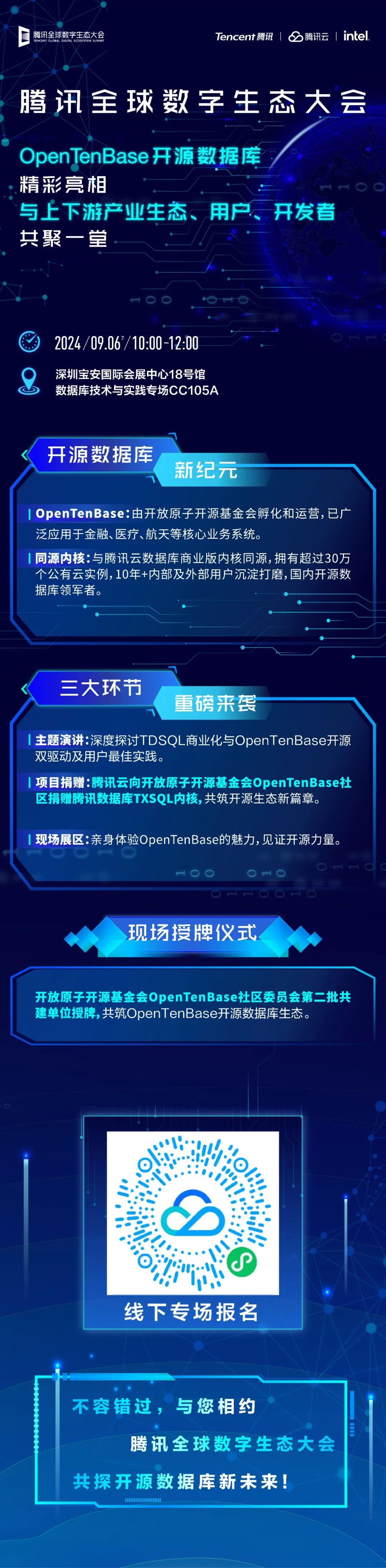 9月6日,深圳 | OpenTenBase开源数据库将亮相腾讯全球数字生态大会