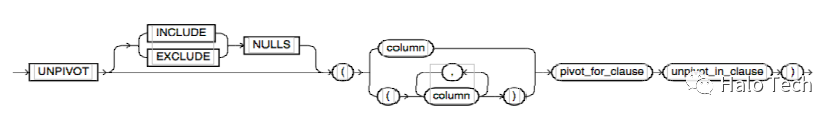 SELECT ...FROM ...UNPIVOT(unpivot_val_clause #定义反转置值的列名unpivot_for_clause #定义反转置所得到列的列名称unpivot_in_clause #定义进行反转置已转置列的列表)WHERE ...