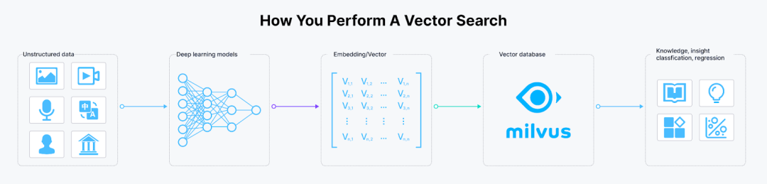 Milvus 是一款开源向量数据库,能够存储十亿级向量数据并执行高效的向量搜索。在接下来的 Demo 中,我们将使用 Milvus 来存储上下文向量并计算查询向量与上下文向量间相似度。