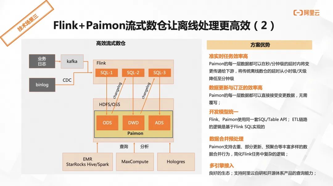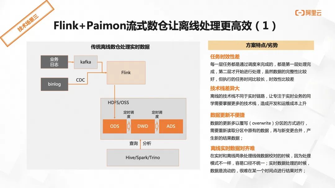 3. 技术场景三:Flink+Paimon 流式湖仓,让传统离线的数仓进行加速和提效