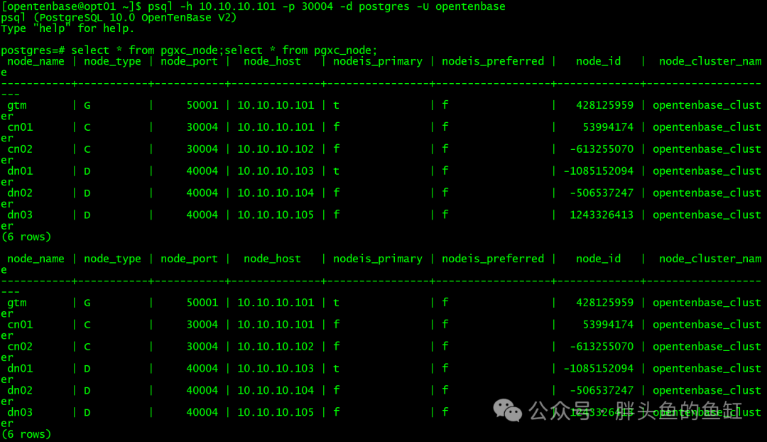 psql -h 10.10.10.101 -p 30004 -d postgres -U opentenbase