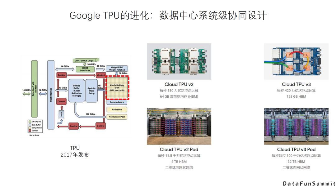 Al领域专用架构,即针对AI的新架构。例如Google TPU,它的设计是专门针对有限的AI应用场景,牺牲一定的通用性和灵活性来换取更高的能效或者性价比。