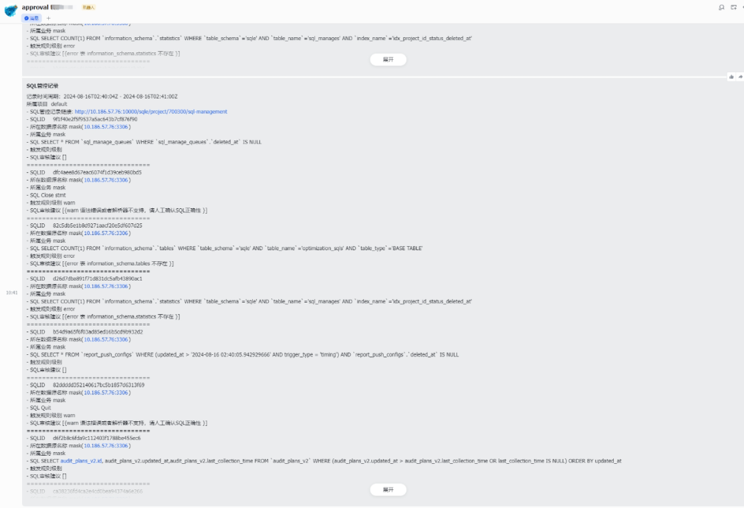 4.审核的 SQL 及审核结果,将在 SQLE 页面记录,方便事后追溯。