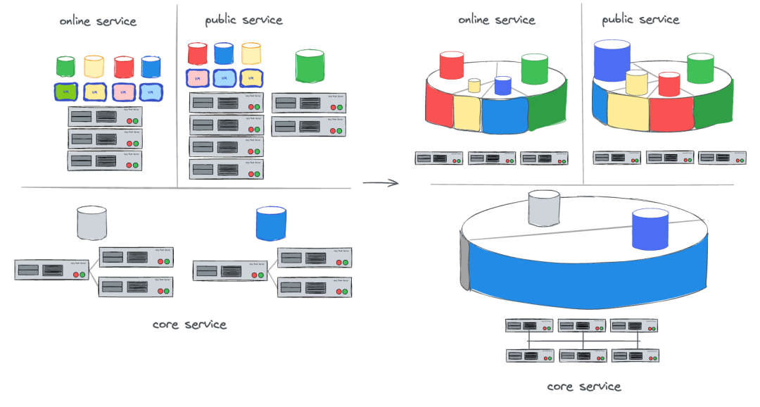 区域集中库是将数据库整合落地在数据库层,通过标准化部署和细粒度资源配置,得到更高的服务可用性、规格弹性和资源利用率。