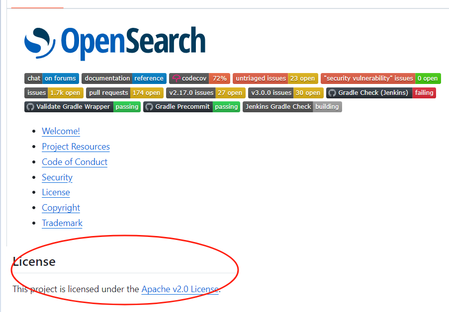 注意:OpenSearch 使用的是 Apache 2.0 许可证(Apache License 2.0)。这是一个宽松的开源许可证,允许用户自由使用、修改和分发代码,无需担心开源代码的使用方式受到过多的限制。