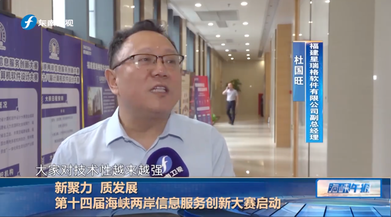 2024年8月29日,福建东南卫视《海峡新干线》栏目以《新聚力、质发展!第十四届海峡两岸信息服务创新大赛启动》为题对大赛进行了宣传报道,福建星瑞格软件有限公司(以下简称星瑞格)作为设题单位亮相,并接受记者采访。