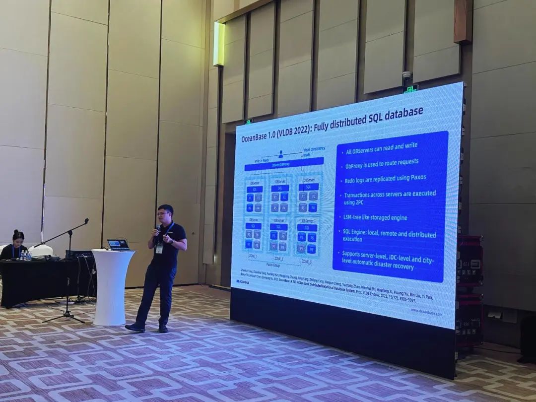 OceanBase CTO, 蚂蚁技术研究院数据库实验室主任杨传辉在VLDB2024现场做主题演讲“OceanBase: 从 OLTP 走向一体化数据库”