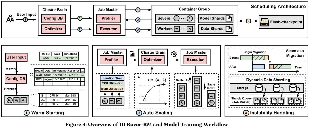 DLRover-RM通过考虑DLRM的独特特性和三阶段启发式策略来开发资源性能模型,以自动分配和动态调整DLRM训练任务的资源,从而实现更高的资源利用率。此外,DLRover-RM还开发了多种机制,以确保DLRM训练任务的高效和可靠执行。我们的广泛评估显示,与最先进的资源调度框架相比DLRover-RM已在蚂蚁集团广泛部署,每天处理数千个DLRM训练任务。DLRover-RM是开源的,已经被超过10家公司采用。