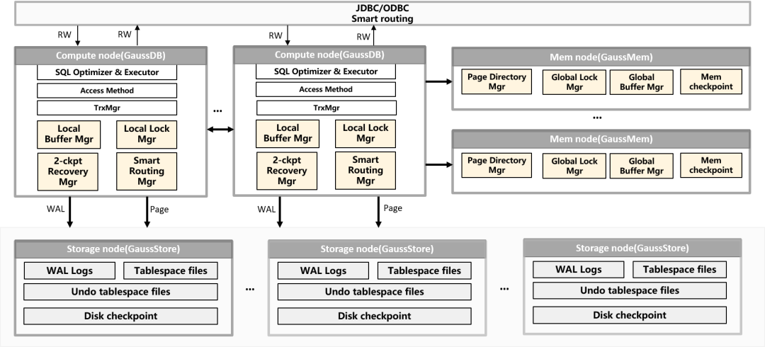 下面对论文进行全方位解读,揭开GaussDB云原生数据库的面纱。新应用场景持续涌现、业务负载快速增加,叠加新硬件技术的不断突破,成为推动数据库架构演进变革的重要推力。OLTP关系型数据库自问世以来,先后出现了主备架构、shared-disk多主架构、shared-nothing分布式架构和云原生存算分离主备架构。如何在云环境下充分发挥先进硬件优势,突破现有架构吞吐扩展能力瓶颈,成为近些年工业界和学术界研究的热点,云原生三层解耦多写数据库正是在这样的背景下产生的。以D*和O*为代表的传统shared-disk多主架构,支持多节点透明多写,具备一定的吞吐扩展能力,在很长一段时间成功的支撑了企业关键业务负载。但其限制也很明显,首先D*和O*多写架构依赖专有硬件,弹性伸缩能力差,TCO较高,用户易被Lock in,在云计算和通用服务器大行其道的背景下,越来越多的用户希望多写架构能够运行于开放平台之上。另外,D*和O*的多节点并发事务状态多采用中心化模式设计,导致其扩展线性比较低,在重业务负载情况下,资源的扩展并不能带来对等的性能收益,导致其业务承载能力受到限制。为继承D*和O*透明多写能力,同时充分利用云平台资源弹性和RDMA高速网络等先进硬件技术,当前业界头部数据库厂商均积极研究云原生多写架构。近期,某云厂商推出的云原生多主数据库,采用计算-内存-存储三层解耦的云原生架构设计,基于中心化组件实现多节点透明多写,是该方向架构演进的一个突破。但从其发表论文的测试数据来看,32节点TPCC吞吐为910万tpmC,而华为GaussDB云原生数据库在相同32节点可达3000+万tpmC的吞吐能力,支持128节点(16384鲲鹏核心)部署,能够支撑PB级OLTP业务规模,目前已在华为内部支撑实际业务生产。第一,国内云厂商多写数据库的页面跨节点修改,采用进程级LLSN实现WAL记录的保序,而GaussDB云原生数据库采用细粒度页面级Lamport LSN保序,进程内无全局冲突点,在多核/众核环境下扩展性更强,能够更好的发挥硬件算力。