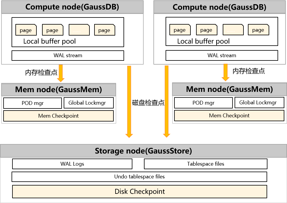 其次,计算节点采用Past-Image设计,计算节点故障可从最近Image恢复,恢复时间大幅减少;最后,GaussDB云原生业界首创双check-point设计,计算节点故障从内存检查点恢复,只有计算节点和共享内存节点同时故障时,才从共享存储的检查点恢复WAL。