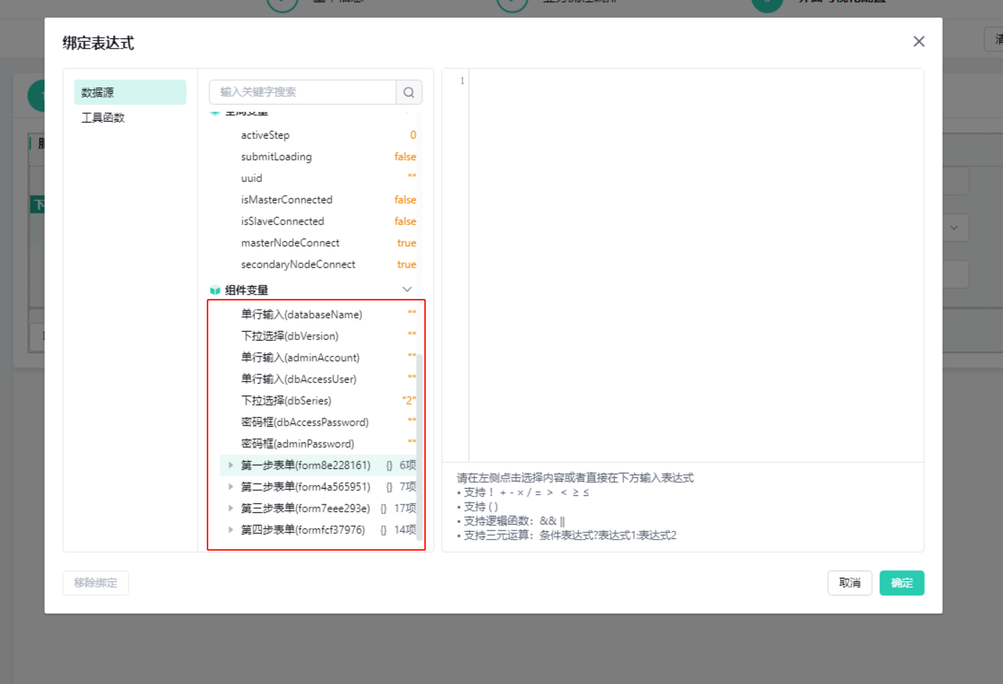 在编辑中可以正常输入、删除,最后确认即可。在绑定后,可以通过左下角【移除绑定】按钮,快速删除表达式。