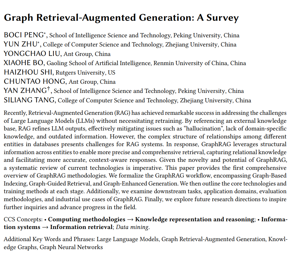 本期分享近日来自北大、浙大、人大以及蚂蚁集团等学者公开的“图检索增强Graph RAG”的综述文章。