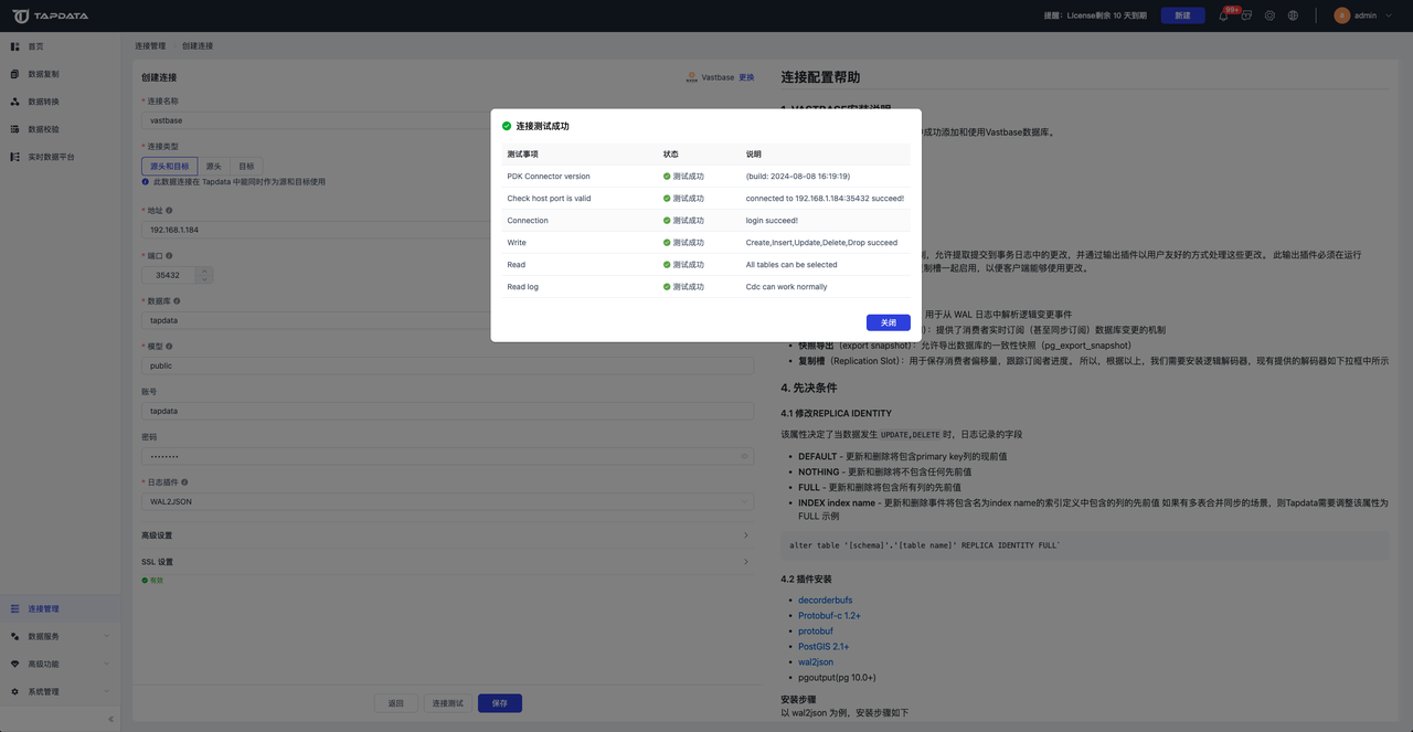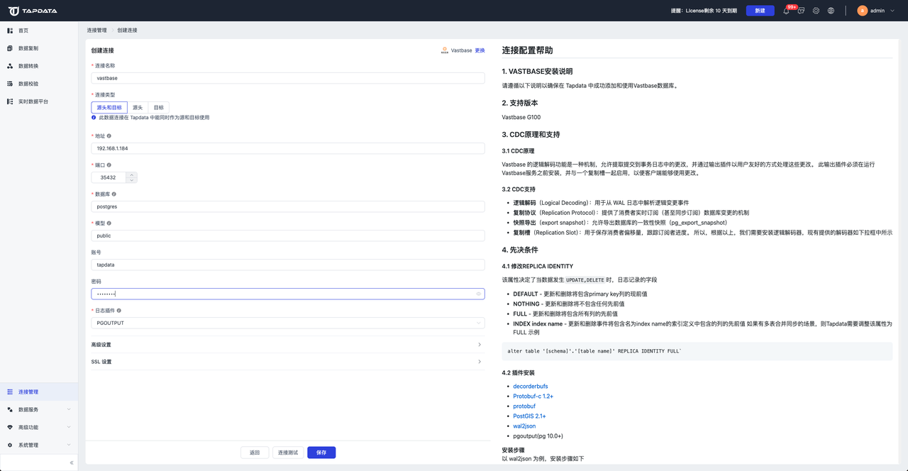 更多详情,参见《TapData 帮助文档-连接数据源-自建数据库 Vastbase》: