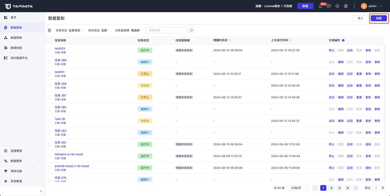 数据复制:TapData 的数据同步包括全量同步和实时增量同步两部分,可帮助您快速实现同/异构数据源间的实时同步,适用于数据迁移/同步、数据灾备、读性能扩展等多种业务场景。