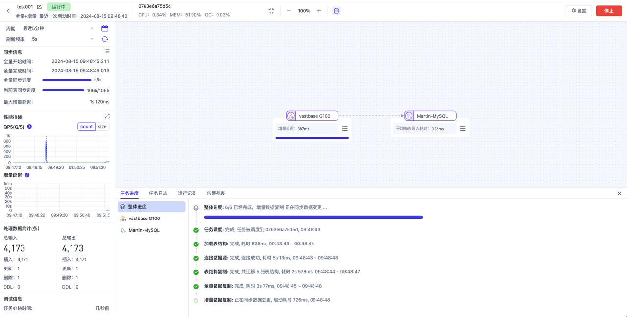 以上,便是借助 TapData 快速实现 Vastbase 到 MySQL 的全、增量同步的模拟教程。