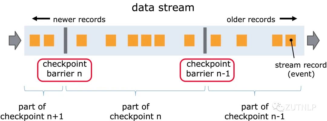 可以看到位于barrier之前的数据在本次Checkpoint之前都需要处理完,而处于barrier之后的数据在本次Checkpoint之前是不能处理的。当然这属于barrier对齐模型,比较严格,会影响数据处理速率。 barrier对齐与非对齐