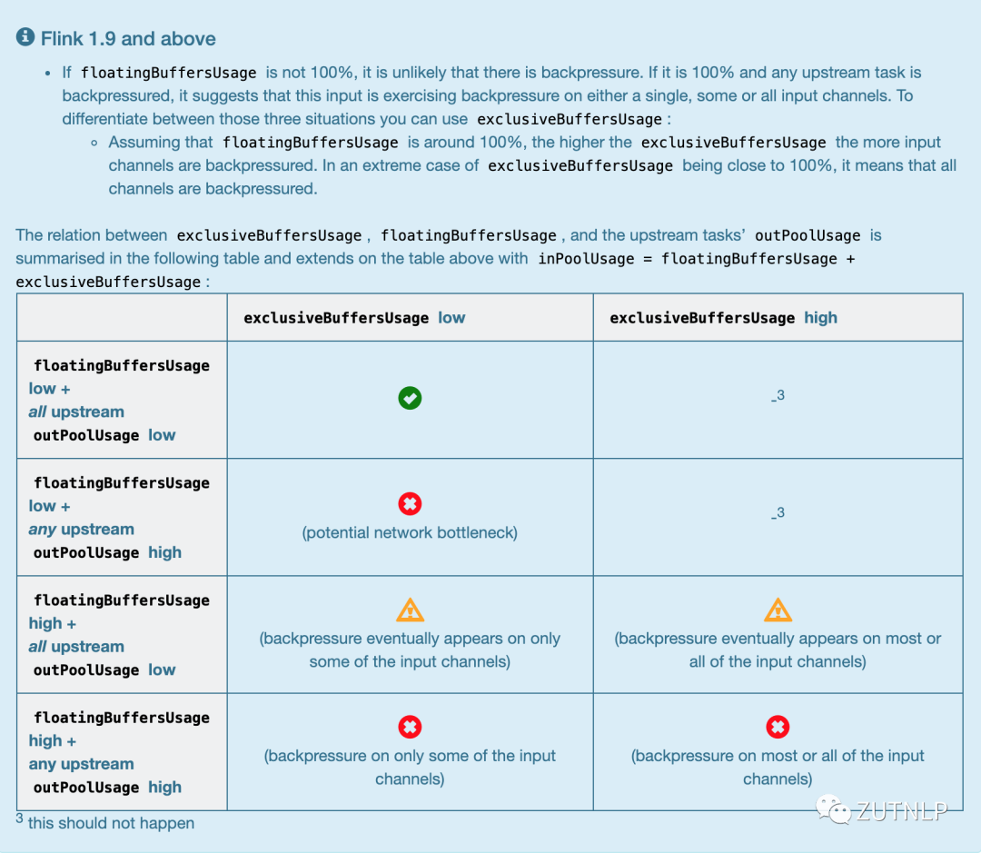 | inPoolUsage | Flink 1.5 - 1.8 中的 inPoolUsage 表示 inputFloatingBuffersUsage。Flink 1.9 及以上版本 inPoolUsage 表示 inputFloatingBuffersUsage 和 inputExclusiveBuffersUsage 的总和 |