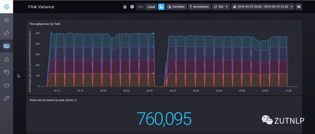 从上图还可得到信息:Flink Job的消费能力先增大,再趋于平稳,应该是反压机制起到作用。