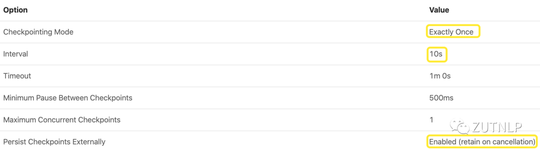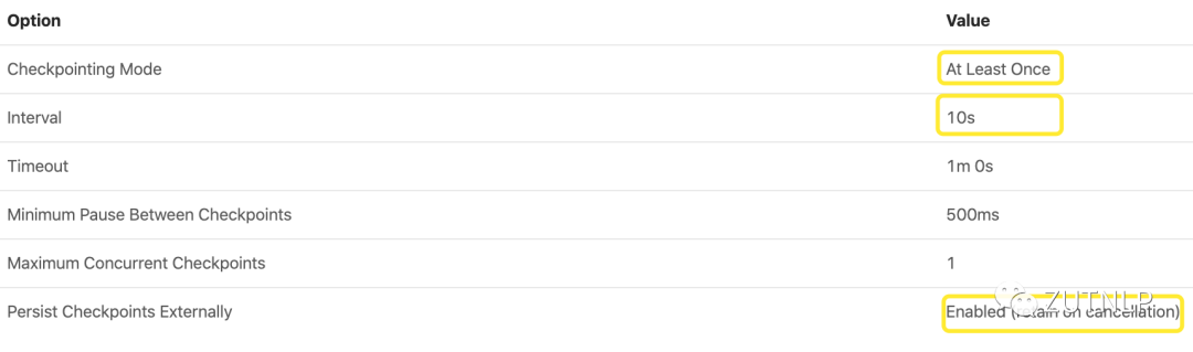 Persist Checkpoints Externally: Enabled or Disabled. 如果设置为为enabled,还需要指明清除策略在程序被cancel后。具体见参数介绍。