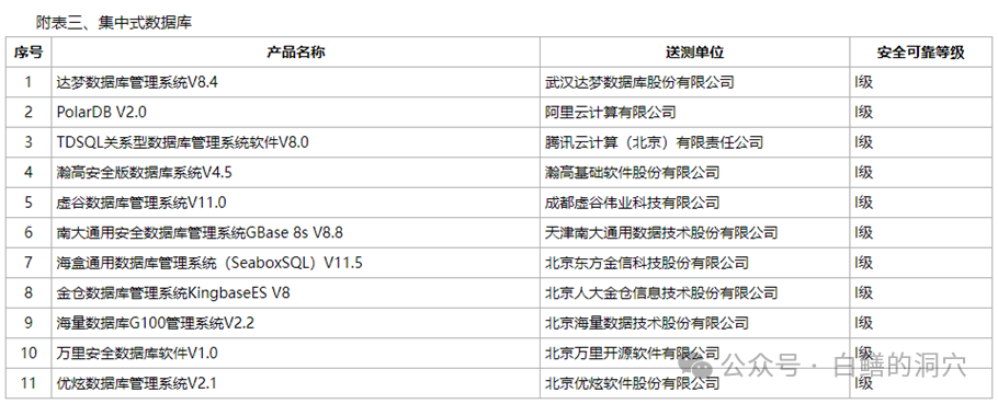 上面的十一个产品是2023年12月发布的安可清单,有效期3年。当日今年的国测已经结束,目前已经在内部评审阶段,最快本月底,最慢下月底,估计就有结果了。届时可能会多一些分布式数据库产品。如果企业是有XC要求的,从这个榜单上去选择产品更加靠谱一些。